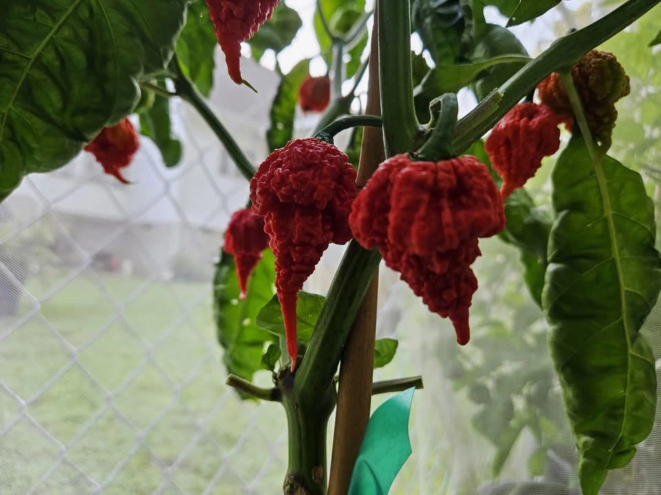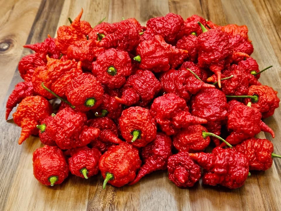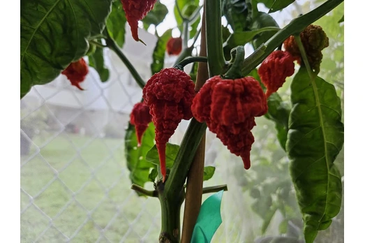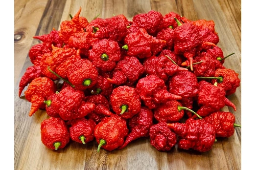 The RB300 is an exceptionally hot chili pepper, created from a cross between the Carolina Reaper and the 7 Pot Brainstrain. This combination produces pods with an intense heat profile and a fruity undertone. The fruits ripen from green to deep red, and the plants deliver a generous yield.