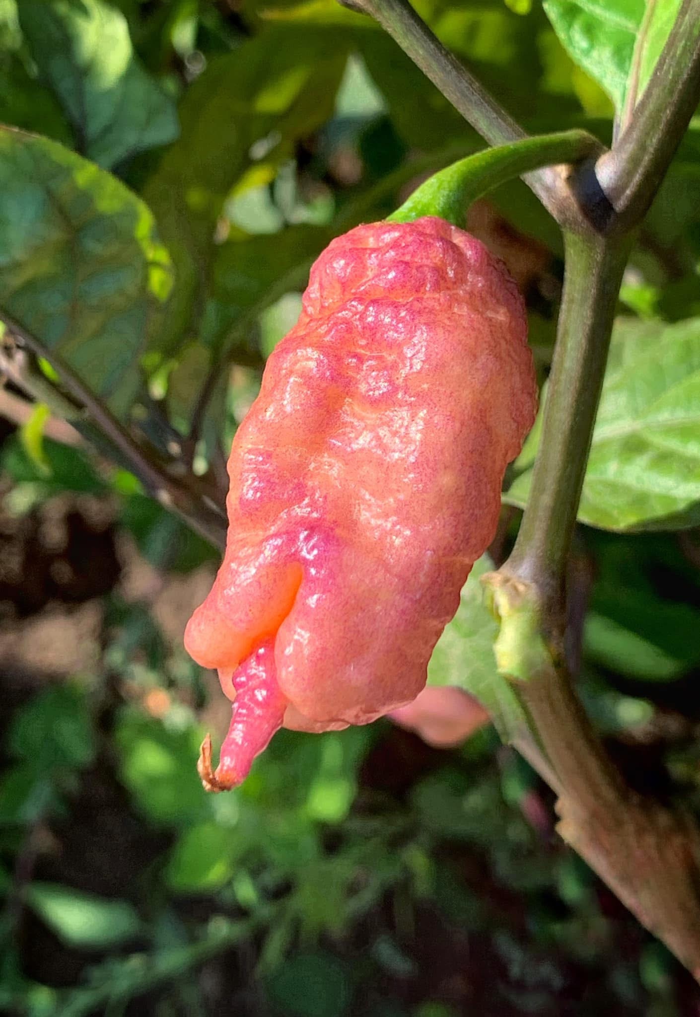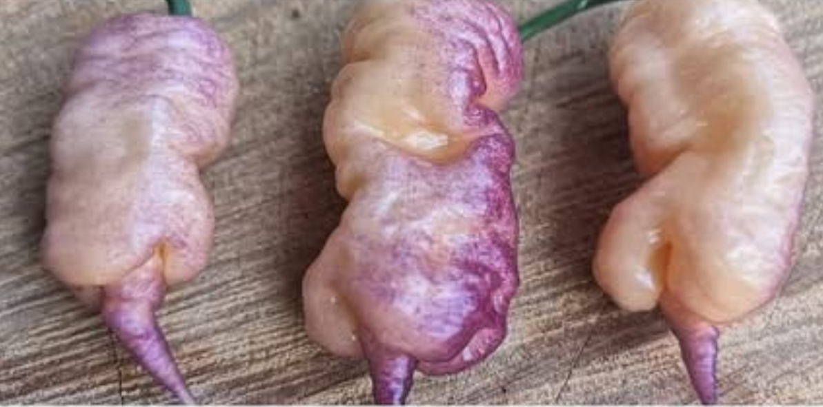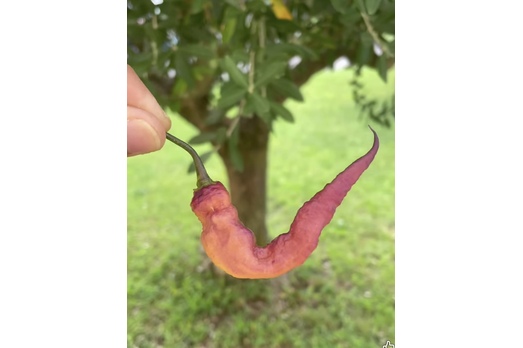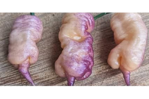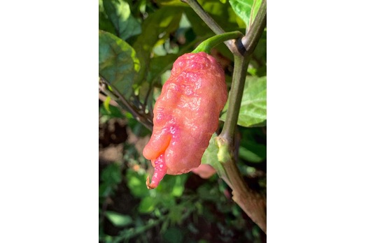 The Carolina Reaper Pink/Peach is a unique variety of the well-known Carolina Reaper. This chili is renowned for its extreme heat level of around 1,000,000 to 2,000,000 Scoville Heat Units and is distinguished by its soft pink to peach-like color.
