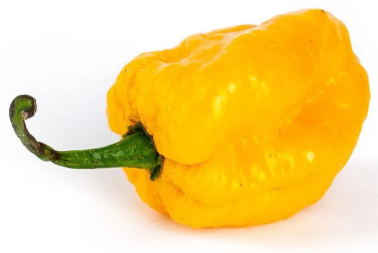 The Yellow Carolina Reaper is slightly bigger and less spicy than the original Carolina reaper Red. It was created by crossing the Red Carolina Reaper pepper and the Yellow Trinidad Moruga Scorpion pepper.