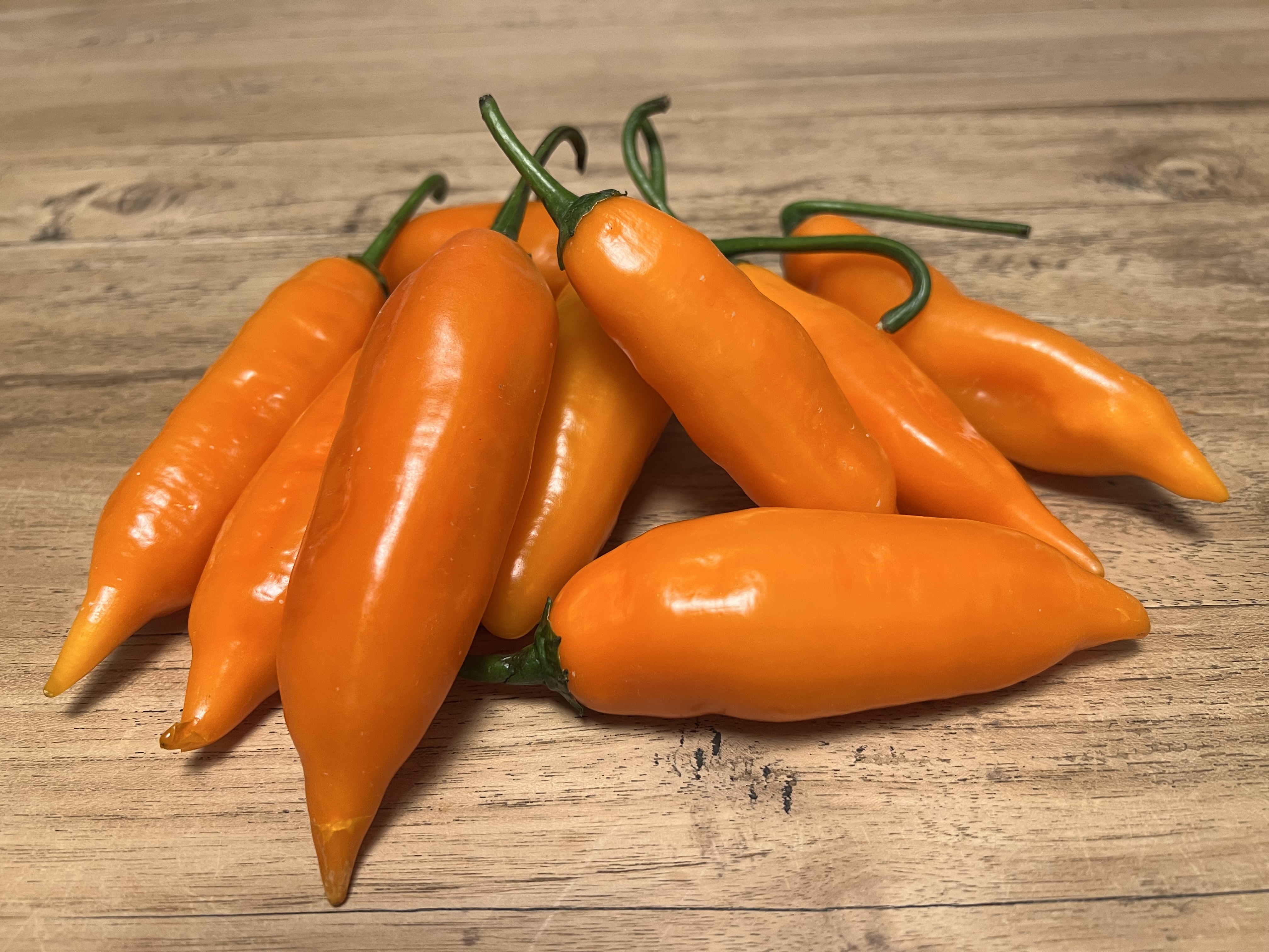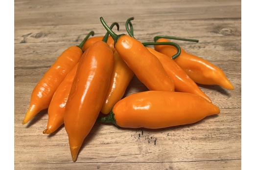 The Aji Amarillo is grown all over Peru. Aji means chili pepper and amarillo means yellow in Spanish. This pepper is considered part of the Peruvian "holy trinity" when it comes to their cuisine, along with garlic and red onion.
